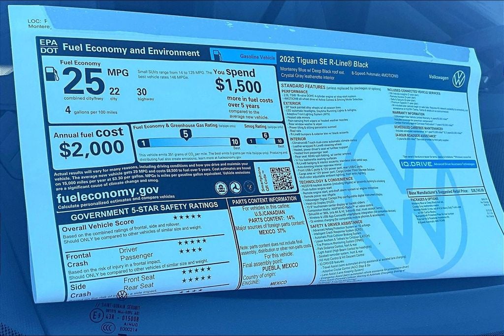 This meticulously maintained Tiguan 2.0T SE R-Line Black, with only 5 miles on the odometer, is a true testament to Volkswagen's commitment to quality and innovation. Experience the difference for yourself and schedule a test drive today. We're confident that this exceptional SUV will exceed your expectations and become the perfect addition to your lifestyle. Price includes: $1000 - Retail Customer Bonus. Exp. 02/02/2026