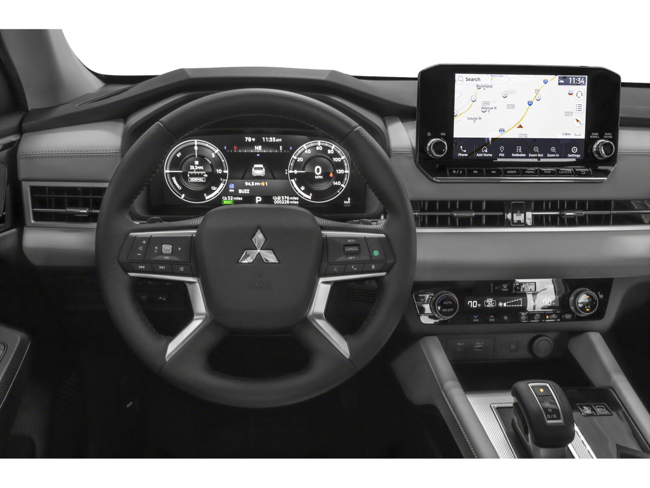 Step inside and you'll be captivated by the Outlander PHEV's sophisticated cabin, which seamlessly integrates cutting-edge technology and premium materials. The expansive 9-inch Smartphone Link Display Audio system puts a world of connectivity and entertainment at your fingertips, while the dual-zone automatic climate control ensures everyone rides in comfort.